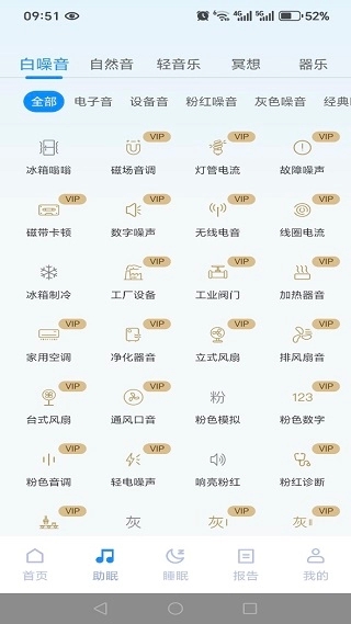 2、助眠页面汇聚了极为丰富的音频素材,用户可按分类挑选,全部免费获取,能随时播放,以舒缓心情。