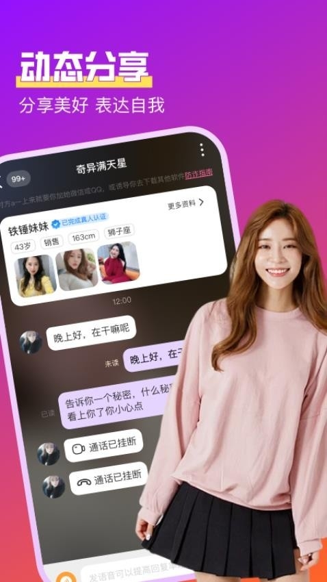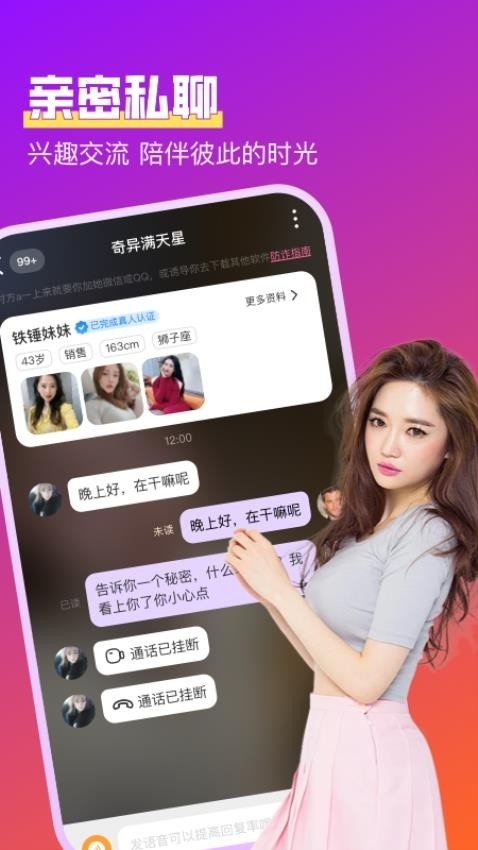 多样化的聊天方式,满足你和网友进行图文和语音视频聊天的需求,聊天更畅快;