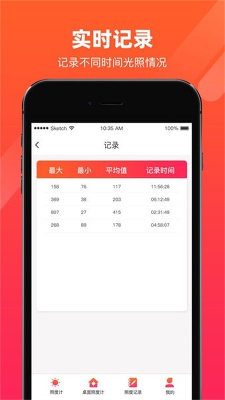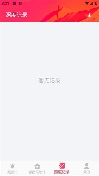 4、在首页下方栏点击照度记录,就可以轻松查看所有的检测数据和记录。