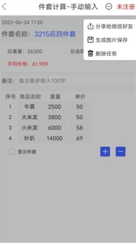 2、平均价格计算:输入一组产品的价格信息,软件会自动计算出这组产品的平均价格,帮助用户更好地了解产品组合的成本。