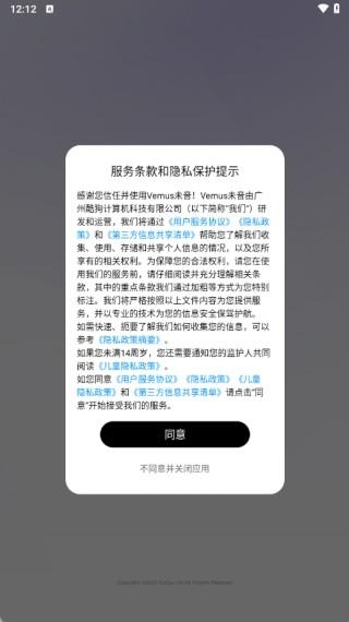 1、打开软件阅读服务条款和隐私政策,点击同意即可开始使用。