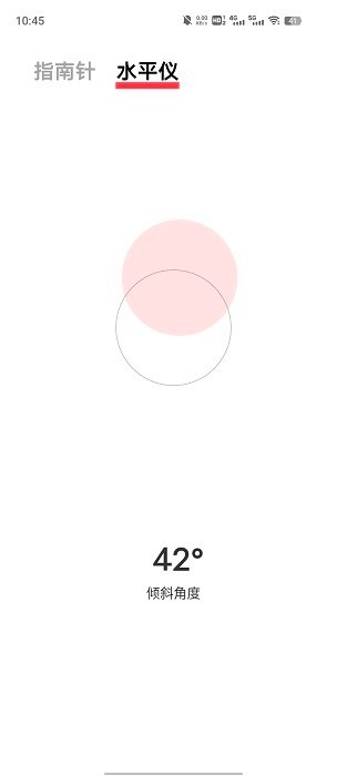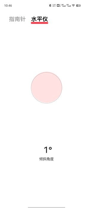 3、切换到水平仪页面后,用户能够实时监测手机的倾斜角度,方便进行家具摆放或水平测量。