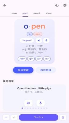 快速呈现单词音素,实现与主流教科书词汇同步的自定义词典构建。