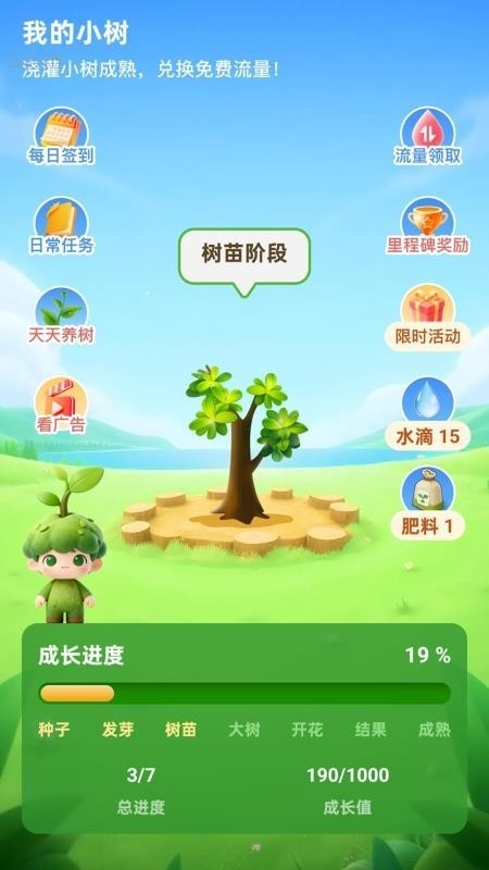 展示了关于小树成长的进度,实时查看自己流量树的成长情况,更好的进行培育。