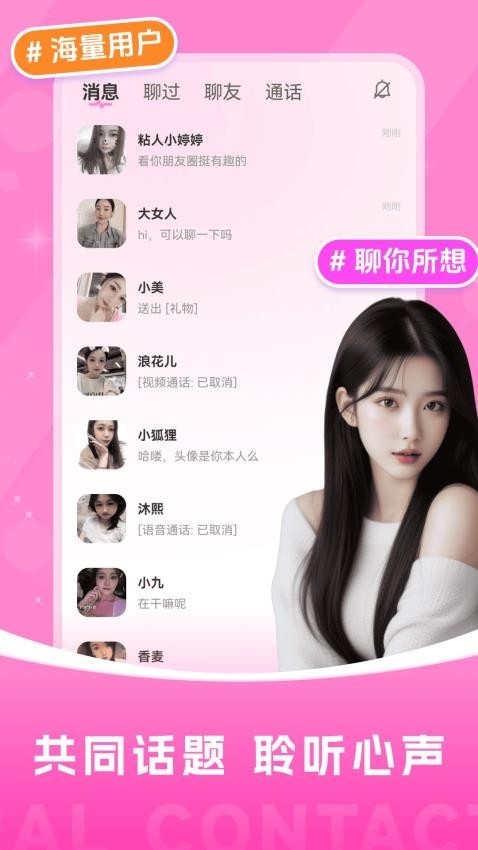 支持用户在线发起视频聊天,可以匹配到面对面交流的有缘人进行互动;