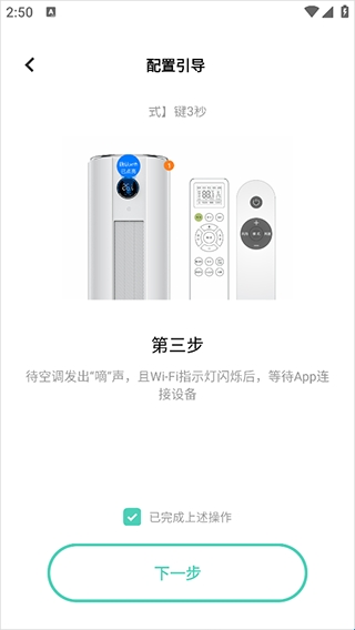 5、完成配置后勾选【已完成上述操作】,然后点击【下一步】