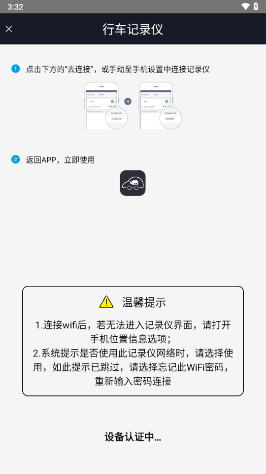 1、快速连接行车记录仪,无需复杂设置和繁琐操作,轻松实现手机与行车记录仪的连接。
