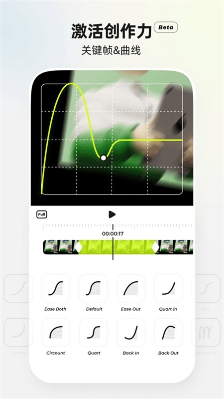 1、关键帧&曲线:运动、特效、滤镜、混合模式等所有功能均支持自由调节关键帧与曲线。