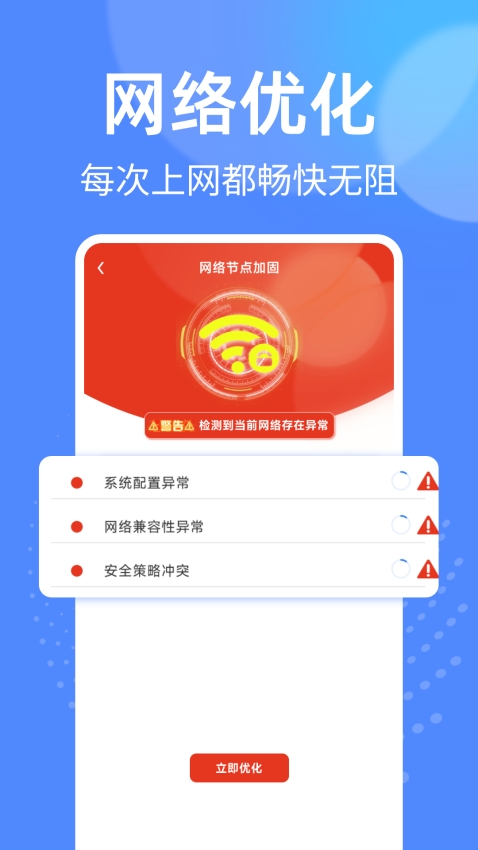 万能WiFi钥匙快连app支持用户轻松实现无线WiFi网络的优化,用户可以实时进行网络守护,轻松便捷的上网,有效增强相关的信号强度,更好的进行WiFi优化,以此来实时提高用户的上网速度,确保用户安全上网;而且用户也可以进行信号增强,实时增强信号覆盖范围。