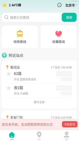 2、用户需快速完成在线定位授权,才能进入公交查询首页。