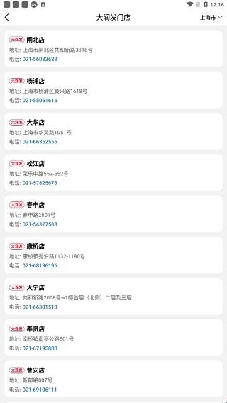2、选择自己所在的地区,即可查看购物卡的适用范围,包括门店地址和电话。