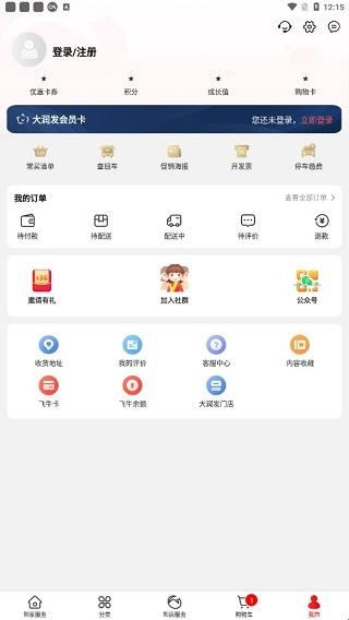 1、进入app点击右下角“我的”,点击“大润发门店”。