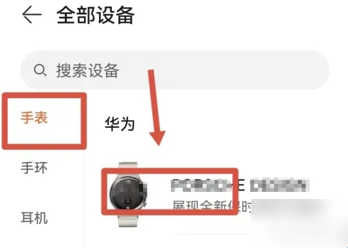 3、在全部设备页面选择手表选项,选择自己的手表类型。