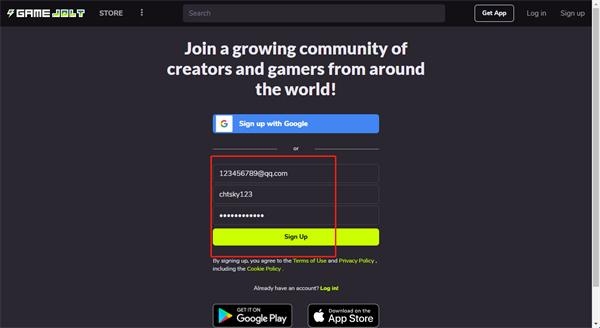 2、将邮箱、用户名和密码填到对应位置,点击sign up;