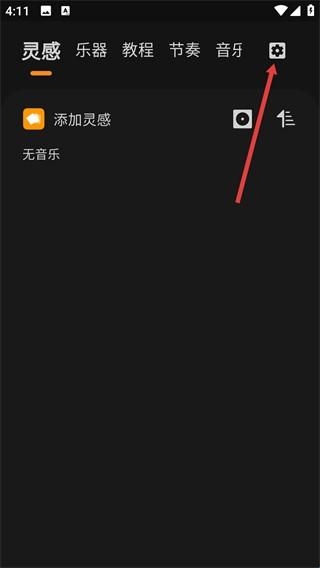 1、在软件主界面,可切换【灵感】【乐器】等功能栏,点击右上角的设置图标,即可打开包含多项功能的操作菜单。