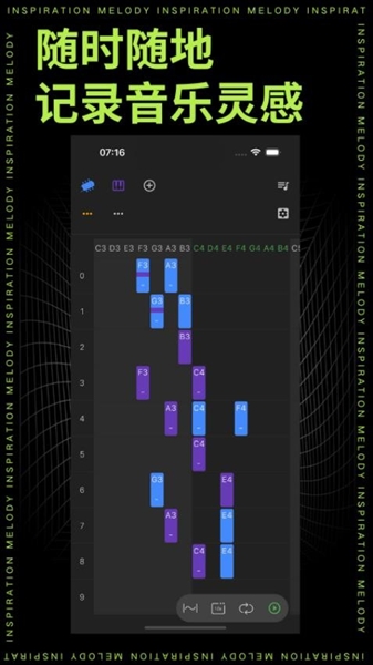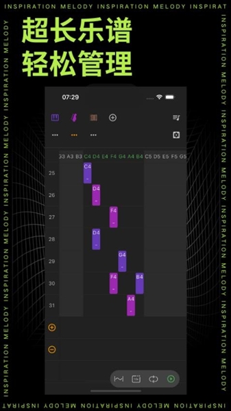 2、轻点指尖,短音即刻呈现;长按不息,长音悠然响起,简化操作让编曲创作变得随心所欲,轻松上手。