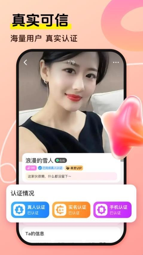 同城蜜友是一款专注同城社交恋爱打造的软件,在此软件里面大家可以享受到真实的面对面交友,平台具有语音、视频、文字等诸多聊天方式,而且平台采用了实名认证和人工审核双重审核模式,给大家打造更加安全的交友平台,喜欢的朋友一起来寻找您的另一半吧!