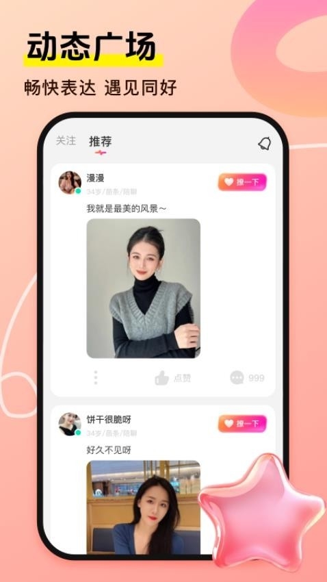 3、用户可分享照片、视频或文字动态,好友可点赞、评论,增强社交粘性,打造活跃社区氛围。