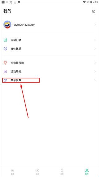 2、点击【共享步数】;