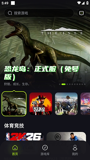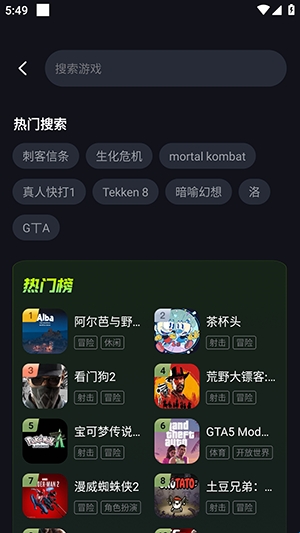 1、在软件首页提供了多种热门游戏大作可以直接点击游玩。