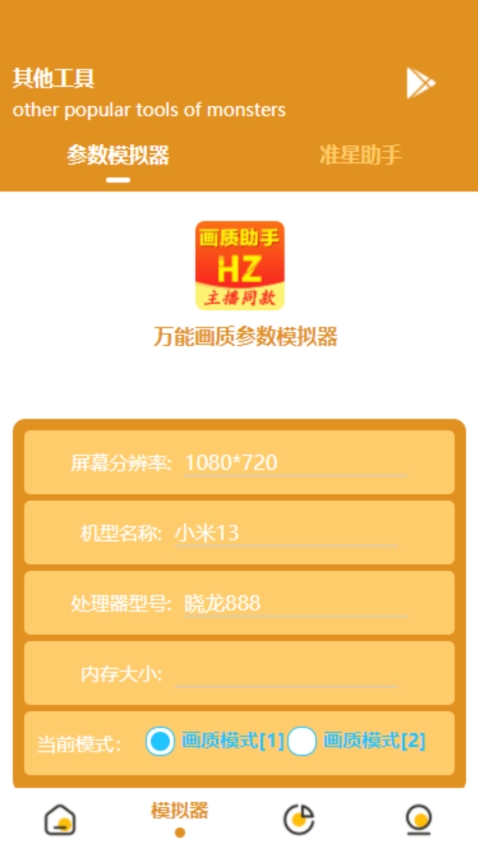 2、到达软件首页界面后,找到底部菜单栏第二个“模拟器”按钮点击进入下一步