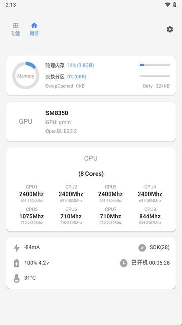 2、包括CPU控制、GPU加速、降温解决方案、内存管理等多种实用模块。