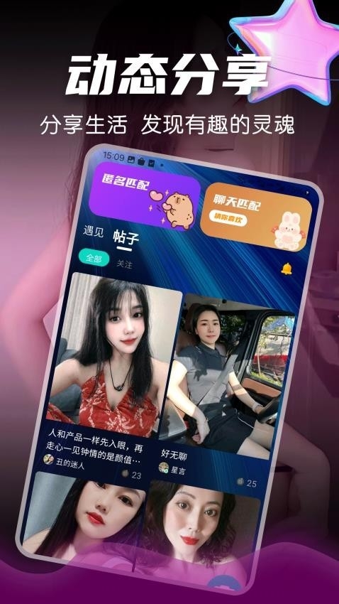 支持语音聊天、发布动态、互动评论等,促进用户之间的交流沟通,加深彼此了解。