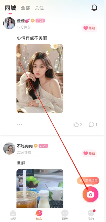 1、用户进入软件之后可以直接在动态页面中点击相机图标即可。