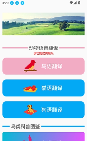 软件提供了线上的鸟语翻译,用户可以一键录制鸟儿的叫声,轻松进行鸟语翻译。