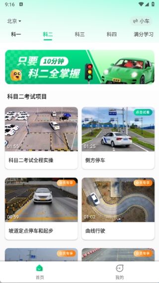2、科目二包含考试项目相关内容,既有全程实操环节,也配备了多个不同项目的教学视频。