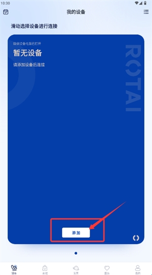 3、在我的设备页面,点击添加按钮,依照指引完成设备绑定。