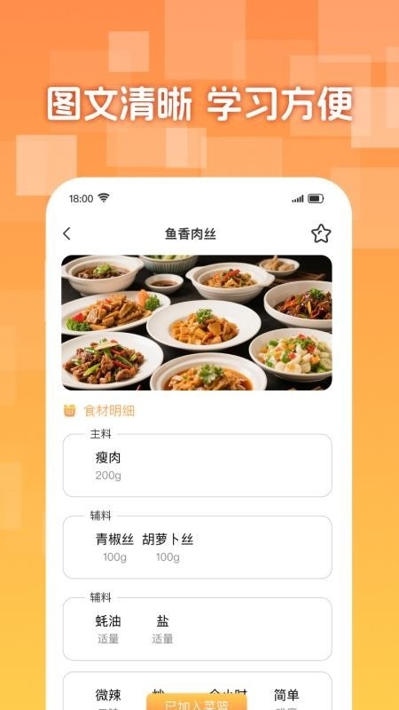 展示了菜谱详细的步骤,精选菜谱就可查看清晰的步骤,让你轻松高效学习。