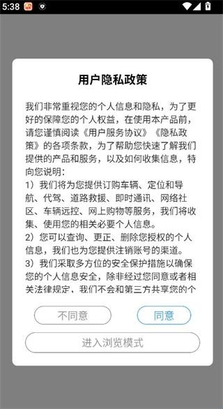 1、下载安装奇瑞汽车app,阅读用户隐私政策后点击同意。