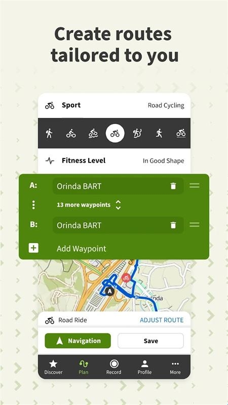 1、选择适合你运动的完美路线-公路自行车用光滑的沥青,山地自行车用单轨,远足旅行的无声单车径或远足时的自然步道。利用指尖信息来计划到最后一个细节。