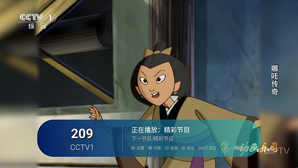 2、点击左侧屏幕唤起电视频道列表。