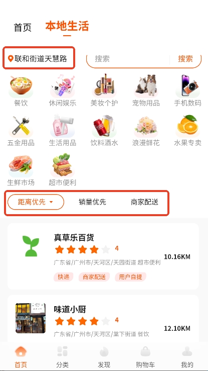 2、还能根据定位信息查询本地附近的优惠门店、