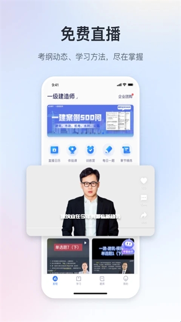 嗨学课堂是一办公学习类的软件,收录了海量优质的教程资源,涵盖各个职业各种考试,为用户提供全面优质的服务功能,帮助更多的用户去顺利通过考试找到功能。软件不仅有各种优质教程可以选择学习,还是有许多的题库内容,无论用户处于学习的哪个阶段,都能够在软件中找到合适的知识和习题去进行学习锻炼等各种操作,帮助更多的用户去提升自己的知识水平,解决更多的用户学习需求。