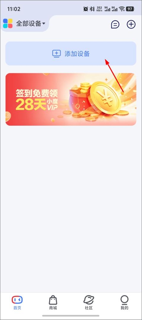 1、首先打开小度音箱app,进入后点击“添加设备”;