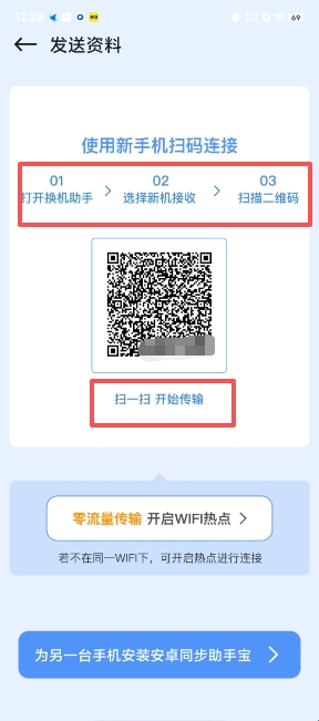 3、点击“开始发送”,利用新机扫描连接便可发送。