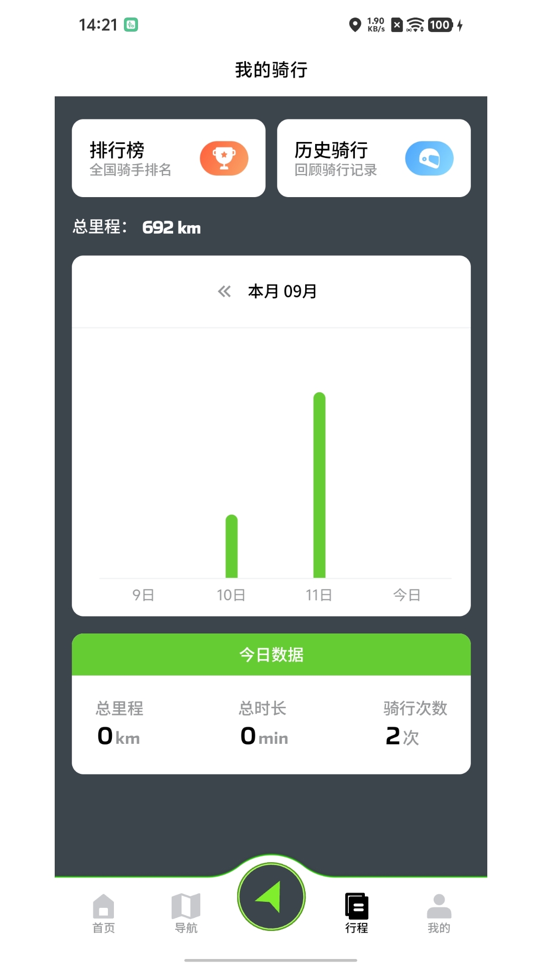 4、骑行档案记录:支持记录并存储单次或历史骑行旅程的相关数据,便于骑手后续回顾与分析自己的骑行轨迹与车辆表现。