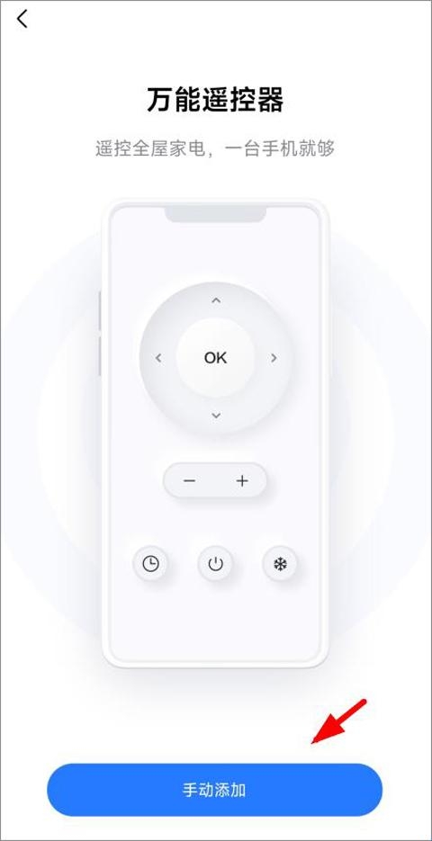 2、进入遥控器页面,用户点击手动添加;