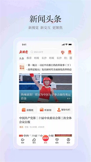2、在首页,用户能轻松浏览各类新闻资讯,包括湖南本地新闻和国际重大事件,确保在短时间内获取所需信息。