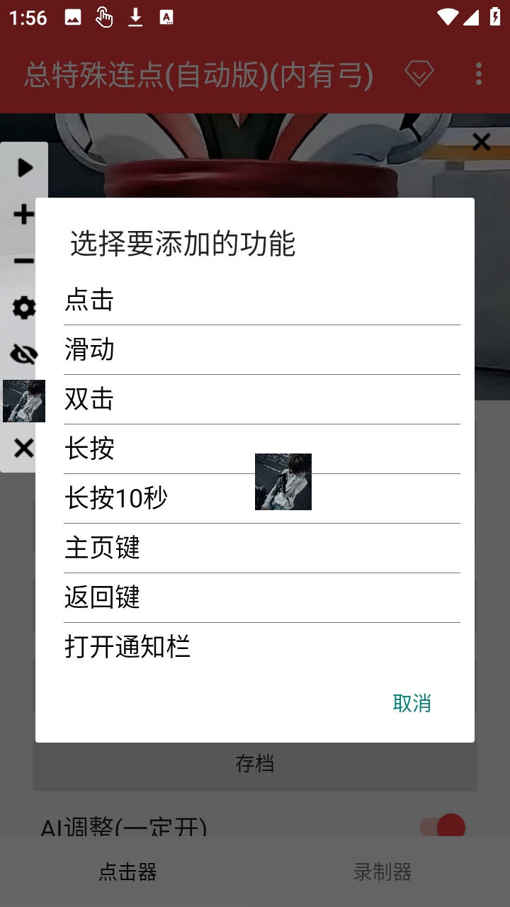 2、点击左侧上方的加号可以添加单点或者多点的手势操作。
