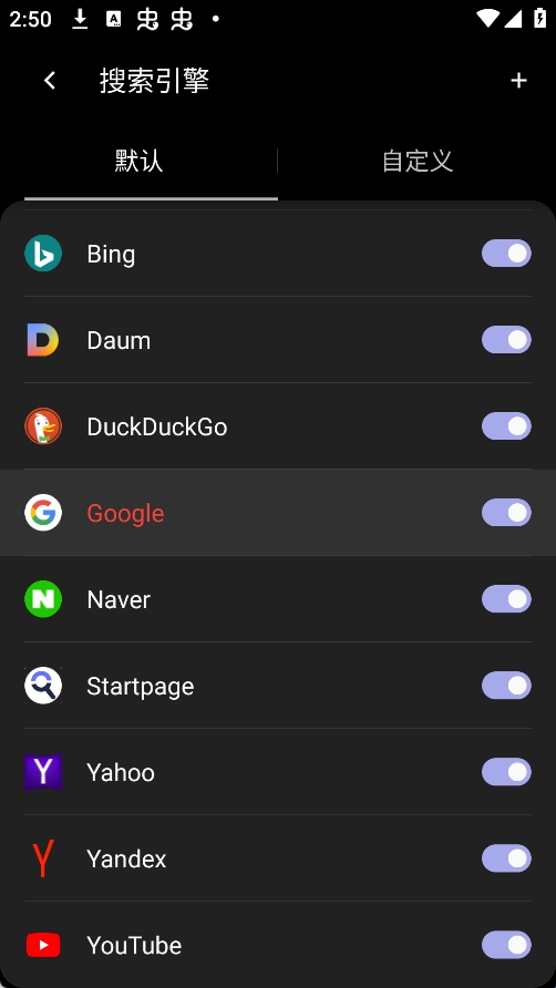 5、最后根据个人习惯,从提供的搜索引擎列表中选择想要使用的即可完成切换。