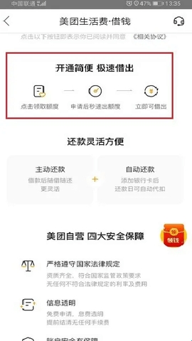 4、填写自己的身份信息,进去领取美团生活费借钱额度,如下图所示: