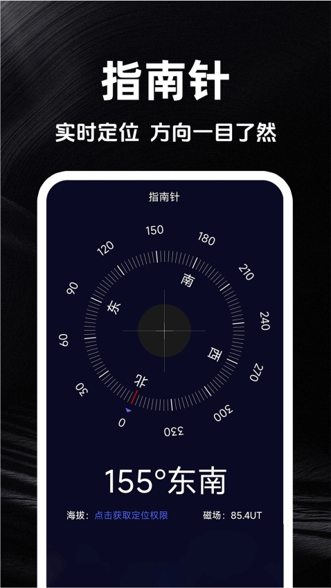 2、指南针:内置指南针功能,让你更快的获取所在地的方向以及经纬度信息;