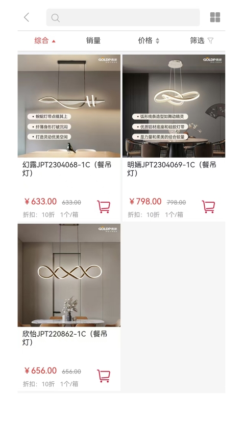 可通过综合、销量、价格等条件筛选需要的商品,以便快速找到并购物下单;