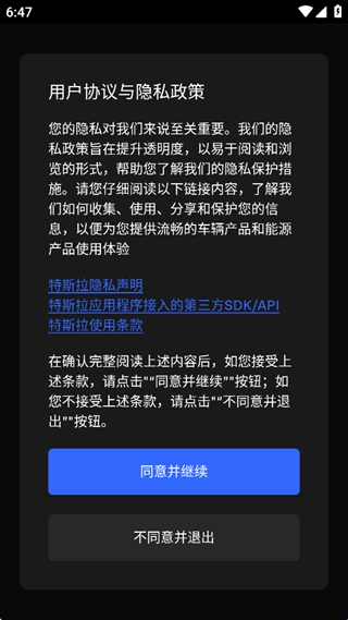 1、打开app,阅读用户协议和隐私政策,然后进入;