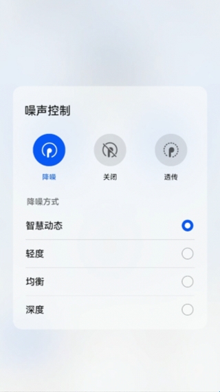 4、噪声控制:降噪模式选择/开启透传,或关闭