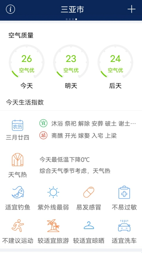 这里还为用户提供了详细的生活指数,便捷查看生活指数建议,获取多种指数。